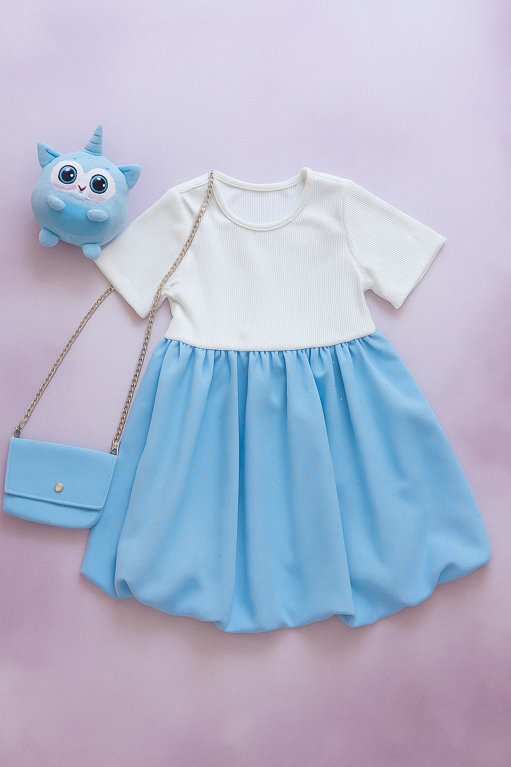 Blue sparkle φόρεμα με glitter και με ασορτί τσαντάκι!!