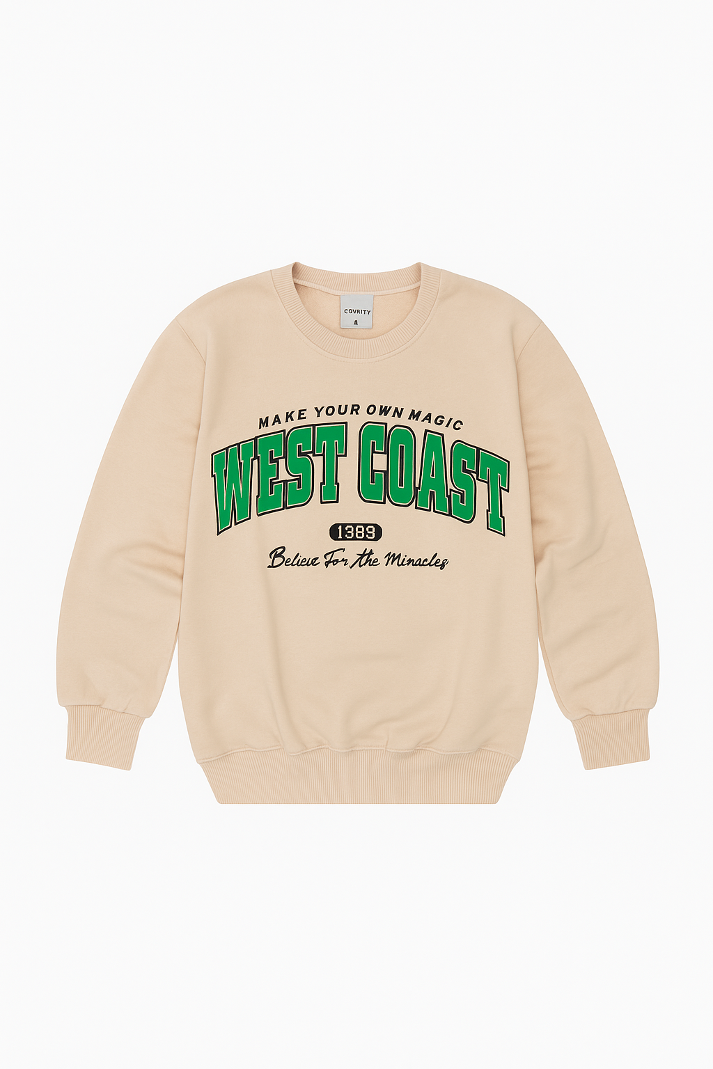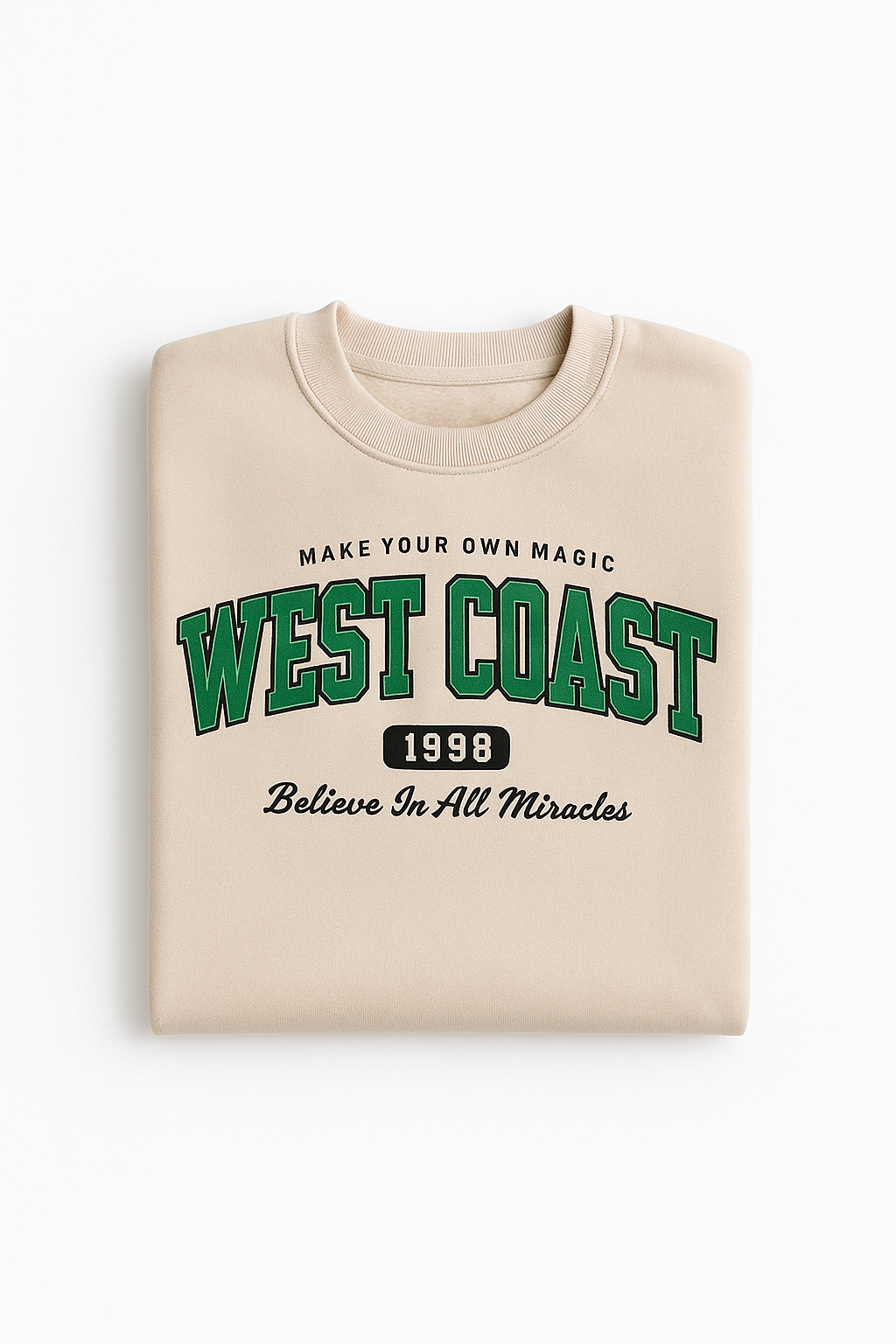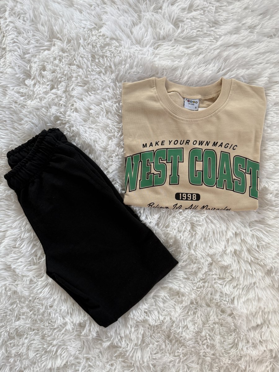 Casual και μοντέρνο φούτερ σε μπεζ απόχρωση με εντυπωσιακή πράσινη στάμπα West Coast και μαύρο παντελόνι. Ιδανικό για αγόρια που αγαπούν το street style. Άνετη γραμμή, μαλακό και ζεστό ύφασμα, ιδανικό για το σχολείο, τις βόλτες ή τις καθημερινές δραστηριότητες. Διαθέσιμο σε μεγέθη 5 έως 14 ετών.