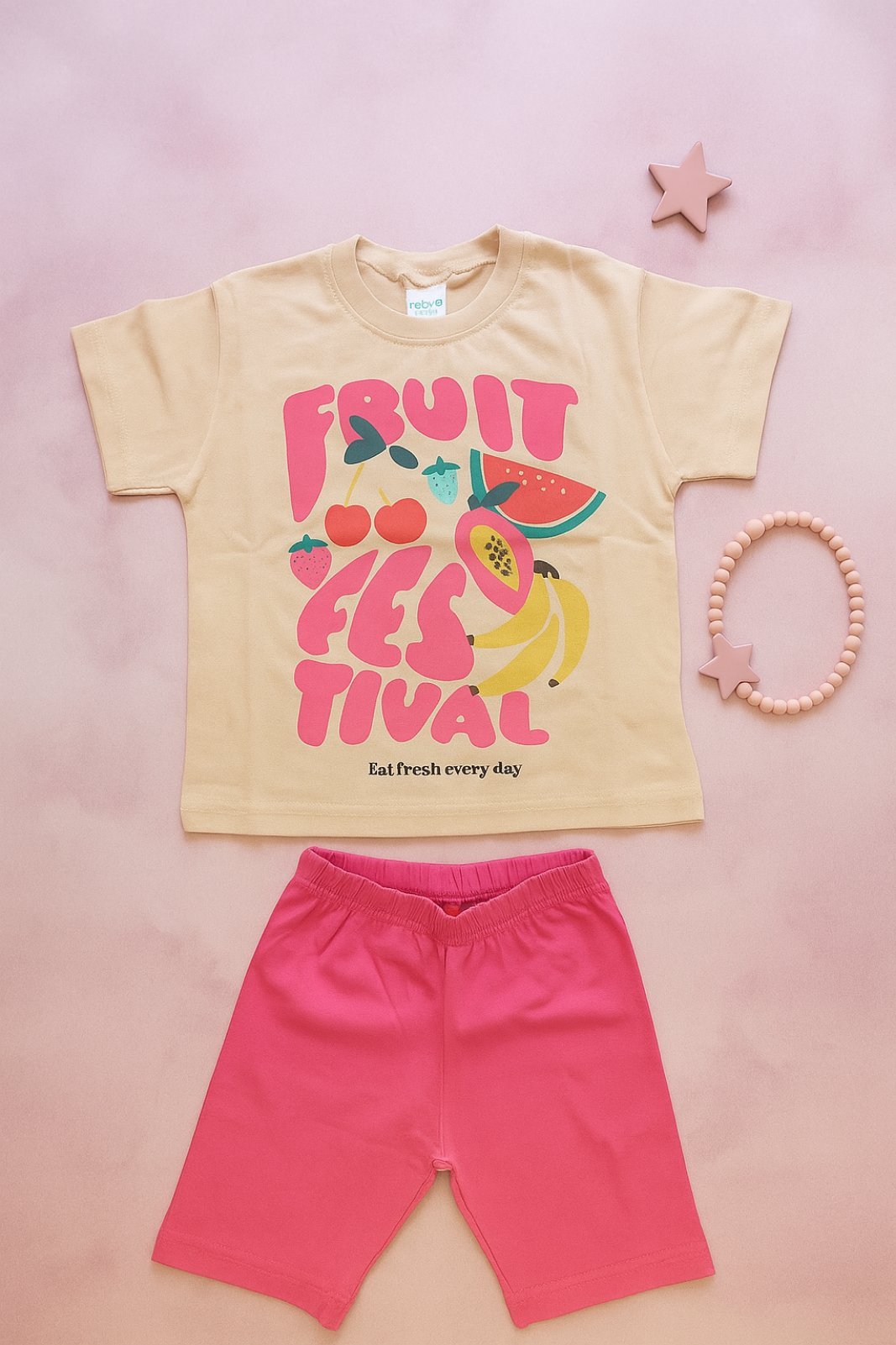Χαρούμενα, άνετα σετ με πολύχρωμα φρουτάκια και παιχνιδιάρικη διάθεση. Ιδανικά για κάθε καλοκαιρινή μέρα!